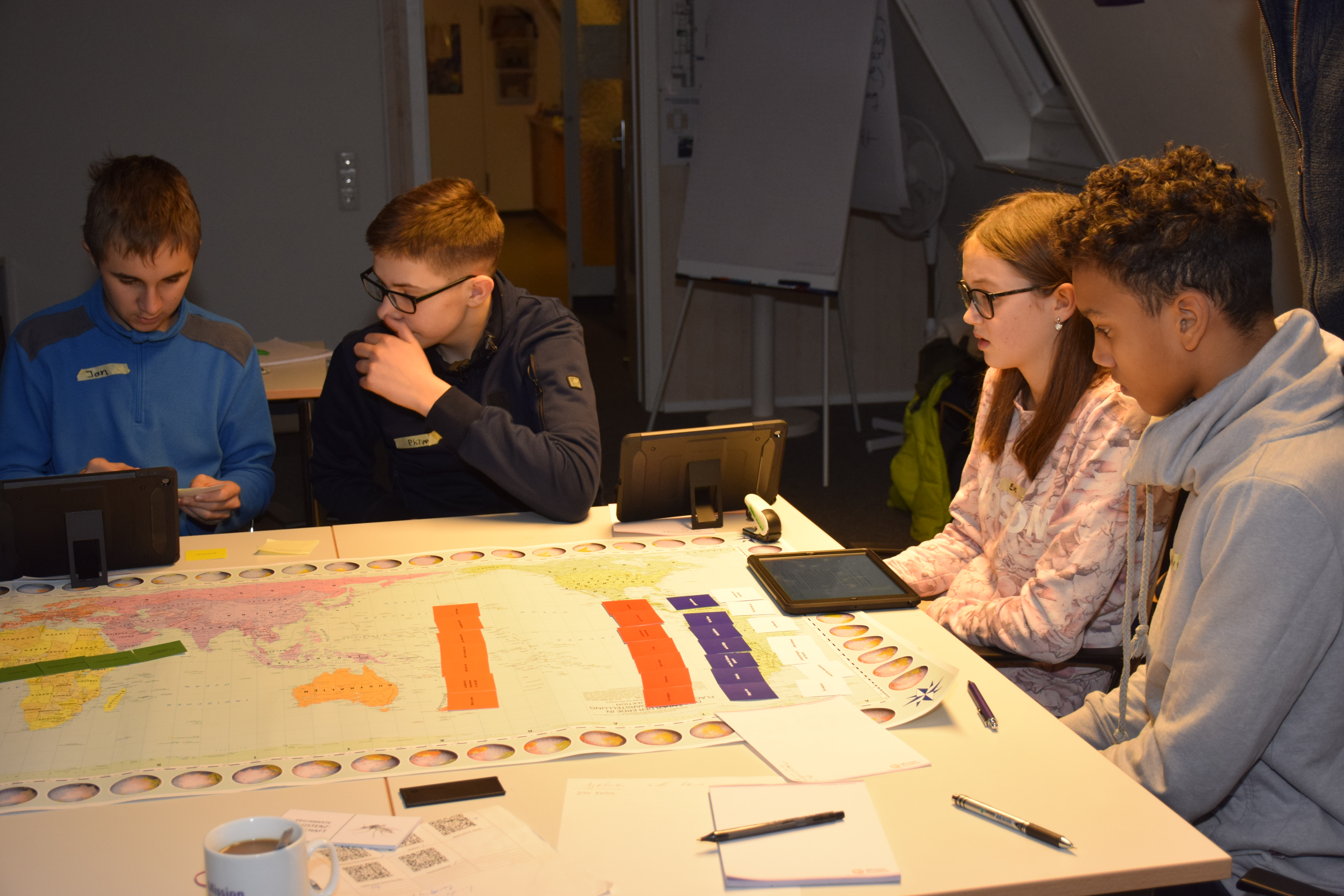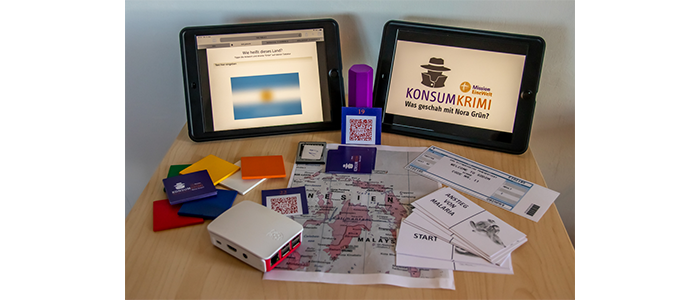 SchülerInnen ab der 7.Klasse und KonfirmandInnen suchen mit Hilfe von Tablets nach den Ursachen für das Verschwinden von Nora Grün, einer Unternehmerin, die ein faires und nachhaltiges Smartphone auf den Markt bringen will. Beim Lösen verschiedener Aufgaben, beim Knacken von Rätseln und Codes stoßen die Schüler*innen auf die meist menschenunwürdigen Abbau- und Produktionsbedingungen sowie umweltzerstörende Praktiken in der Handy-Produktion in Ländern wie Argentinien, Ghana, Indonesien und China. Aber auch auf Initiativen, Arbeiter*innen, Genossenschaften u.a., die sich für faire und umweltschonende Bedingungen einsetzen.